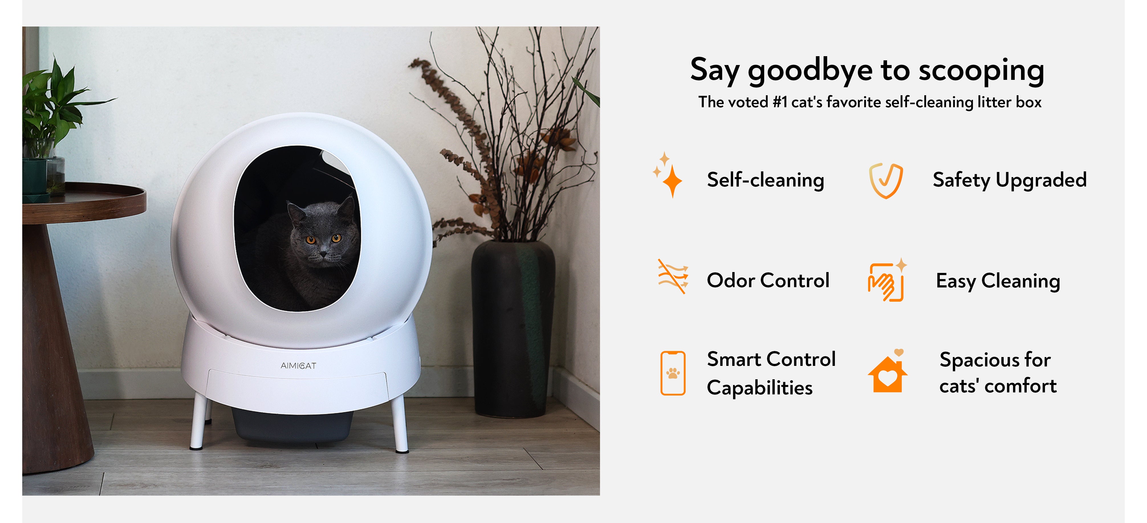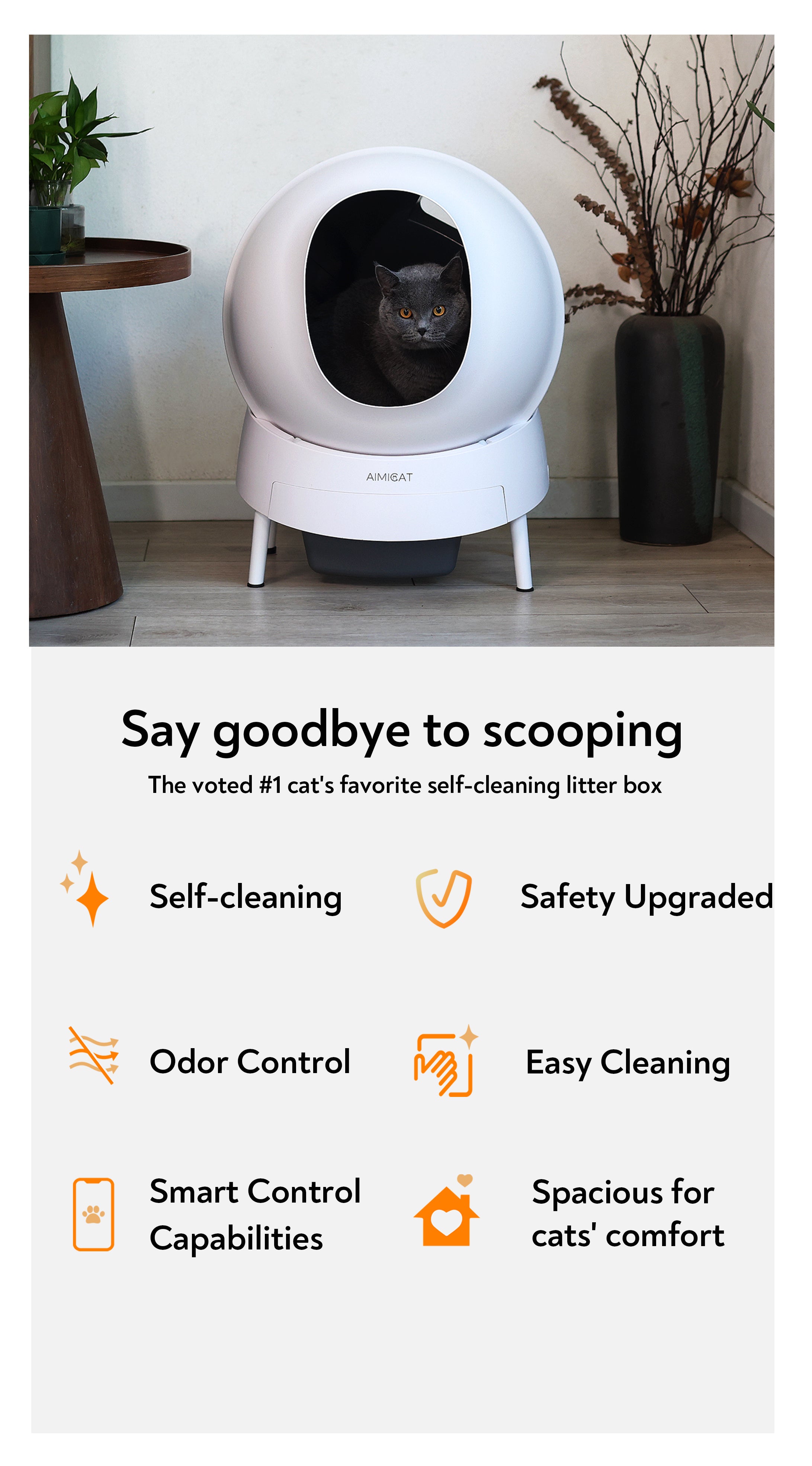 Say goodbye to scooping forever with voted #1 cat's favorite self-cleaning litter box – Aimicat Pro. Experience ultimate safety for your feline friend with Aimicat Pro's millimeter-wave radar technology. Advanced negative air pressure system minimizes odors. The integrated chamber design ensures easy cleaning. Stay informed with real-time monitoring of waste chamber capacity and your cat's activity patterns through the companion app. Join the growing community of pet parents who have transformed their lives with Aimicat Pro.